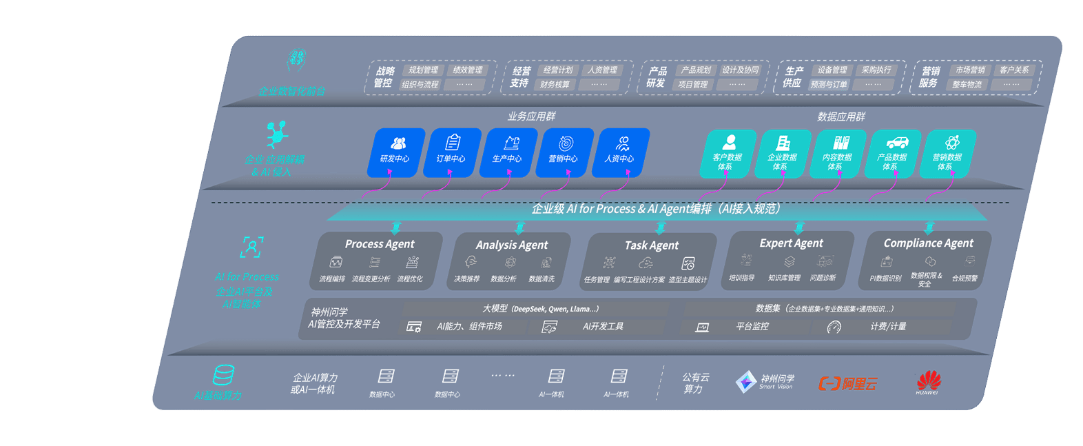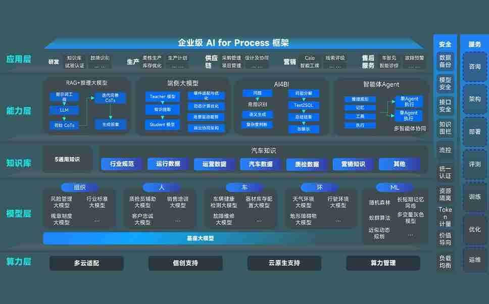 智博1919问学智车解决方案是一套基于AI技术的汽车行业智能化系统,,,,覆盖从底层算力到顶层AI应用的全栈方案。。方案由算力层、、、模型层和应用层组成:算力层,,,,方案支持多种一体机配置,,具备云端灵活部署、、、多云适配以及动态优化计算资源的能力;模型层,,智博1919问学平台版提供了企业级AI应用一站式构建与管理平台,,,,支持基于后训练强化技术的汽车企业专属模型的训练、、、、评测和运营;应用层,,,智博1919问学DeepSeek版提供包括超级员工、、智能招采、、、、智能营销、、、、智能客服、、AI for BI等一系列解决方案,,可助力汽车行业实现数字化转型,,,让管理更智能、、、、响应更敏捷。。